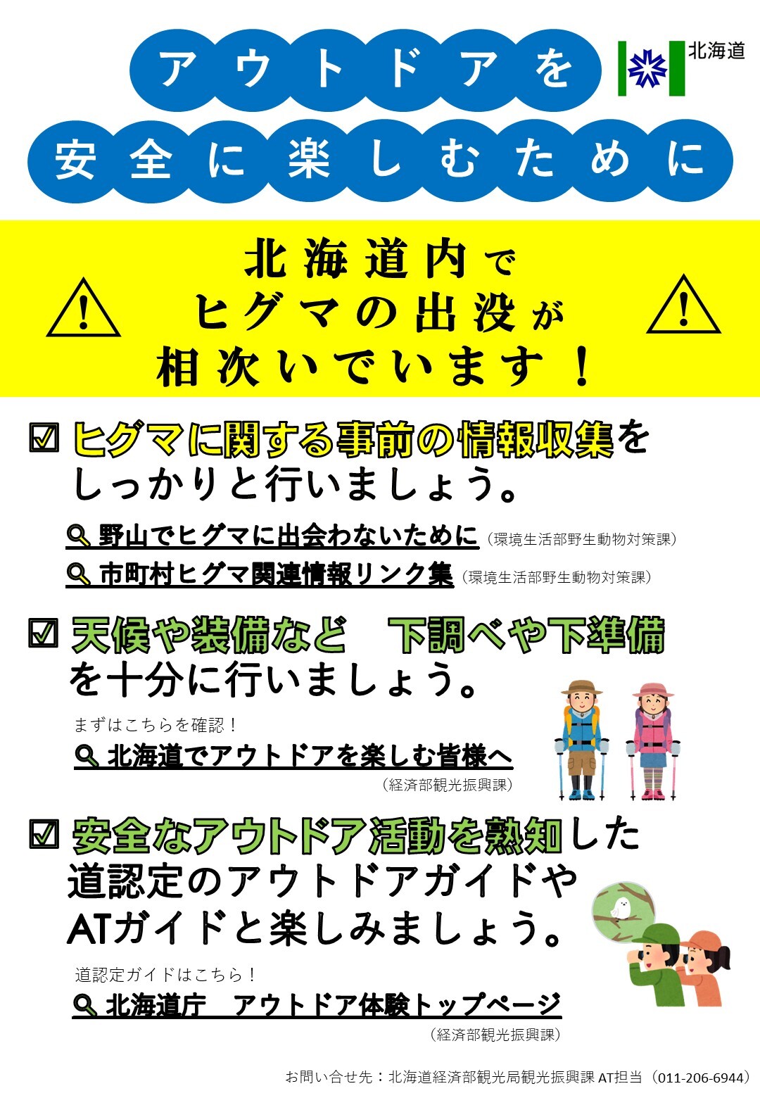 北海道、十勝総合振興局より ヒグマ出没の注意喚起のお知らせです